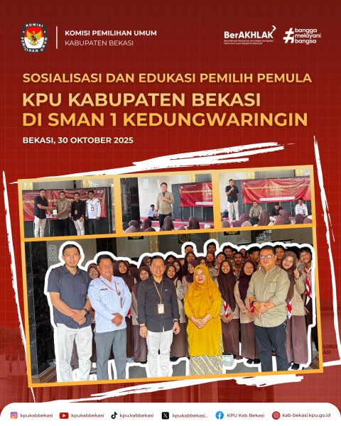 Sosialisasi dibuka oleh Ketua KPU Kabupaten Bekasi, Ali Rido, dan perwakilan SMAN 1 Kedungwaringin pun menyambut hangat kedatangan KPU Kabupaten Bekasi. Sosialisasi diikuti oleh para siswa dengan rentang umur 15 hingga 17 tahun dengan tujuan untuk mengedukasi para calon pemilih pemula agar menjadi pemilih yang cerdas dan bijak di Pemilu dan Pemilihan selanjutnya.