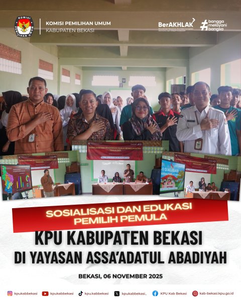 Sosialisasi di Yayasan Assa'adatul Abadiyah ini menjadi penutup dari kegiatan Sosialisasi dan Pendidikan Pemilih Berkelanjutan yang telah diselenggarakan oleh KPU Kabupaten Bekasi hingga penghujung tahun 2025.