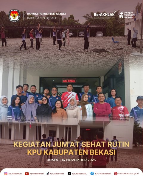 Hari ini, KPU Kabupaten Bekasi melaksanakan kegiatan rutin setiap hari Jumat berupa senam sehat dan team building nih #TemanPemilih! (14/11).