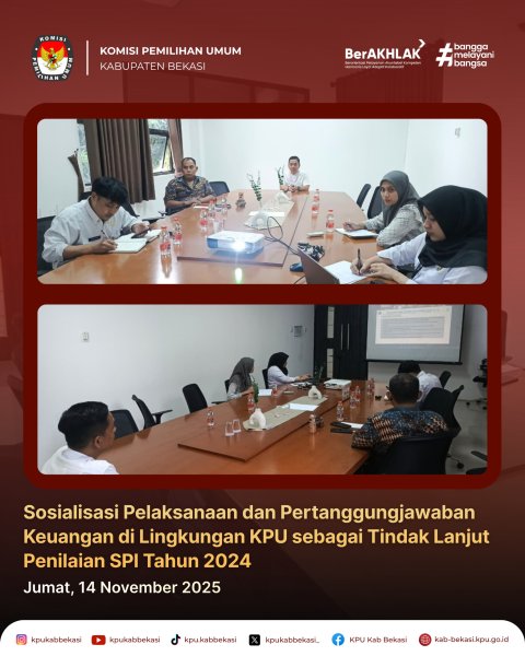 Seluruh Sub Bagian Keuangan, Umum, dan Logistik mengikuti kegiatan Sosialisasi Pelaksanaan dan Pertanggungjawaban Keuangan di Lingkungan KPU. Kegiatan ini sebagai tindak lanjut penilaian SPI tahun 2024 (14/11).