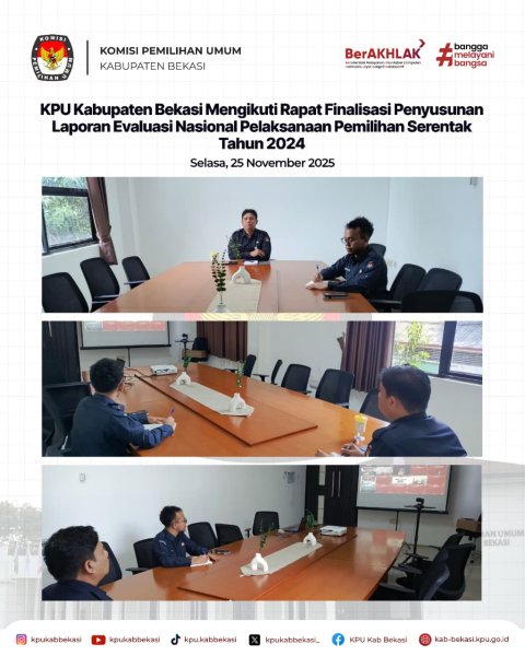 Rapat Finalisasi Evaluasi Nasional Pelaksanaan Pemilihan Serentak Tahun 2024 di Lingkungan KPU Kabupaten Bekasi
