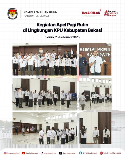 #TemanPemilih Apel pagi rutin KPU Kabupaten Bekasi dilaksanakan hari ini dalam rangka untuk memulai kegiatan yang akan dilaksanakan seminggu ke depan dengan penuh semangat (23/02).