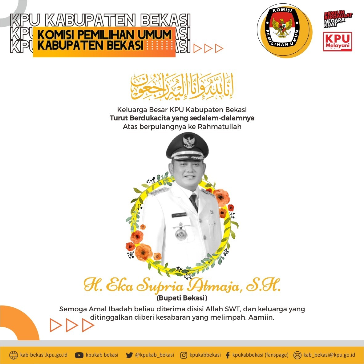 Bupati Eka Supriatmaja Wafat, KPU Bekasi Berdukacita