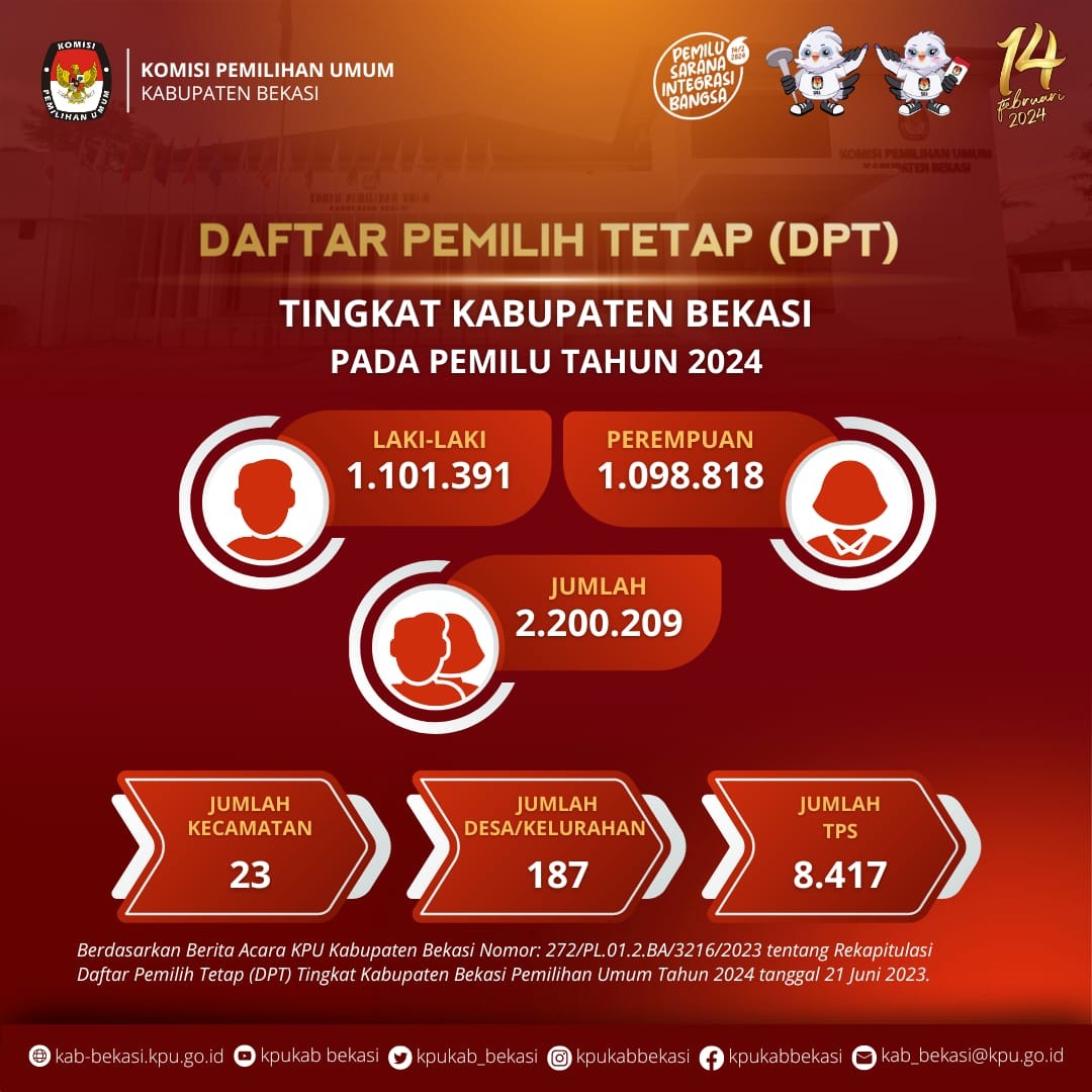 Rekapitulasi Daftar Pemilih Tetap (DPT) Kabupaten Bekasi sebagai berikut: