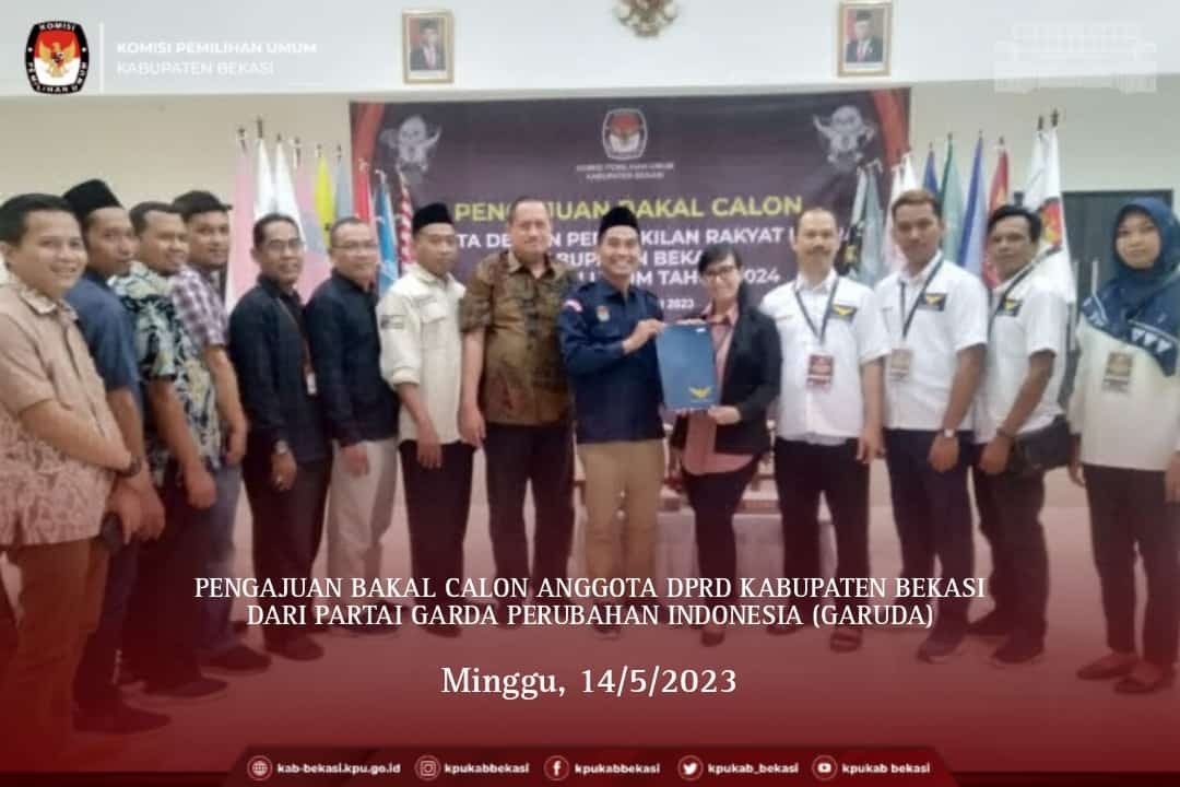 Bekasi, kab-bekasi.kpu.go.id_DPC Partai Garda Perubahan Indonesia (GARUDA) Kabupaten Bekasi menyampaikan pengajuan bakal calon anggota DPRD Kabupaten Bekasi untuk Pemilihan Umum Tahun 2024 ke KPU Kabupaten Bekasi pada Minggu (14/5/2023) pukul 23.00 WIB.