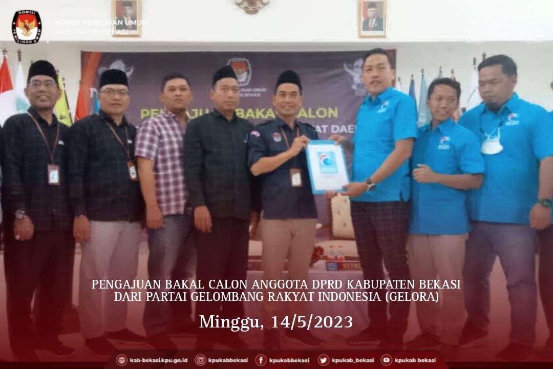 Bekasi, kab-bekasi.kpu.go.id_DPD Partai Gelombang Rakyat Indonesia (GELORA) Kabupaten Bekasi menyampaikan pengajuan bakal calon anggota DPRD Kabupaten Bekasi untuk Pemilihan Umum Tahun 2024 ke KPU Kabupaten Bekasi pada Minggu (14/5/2023) pukul 13.00 WIB.