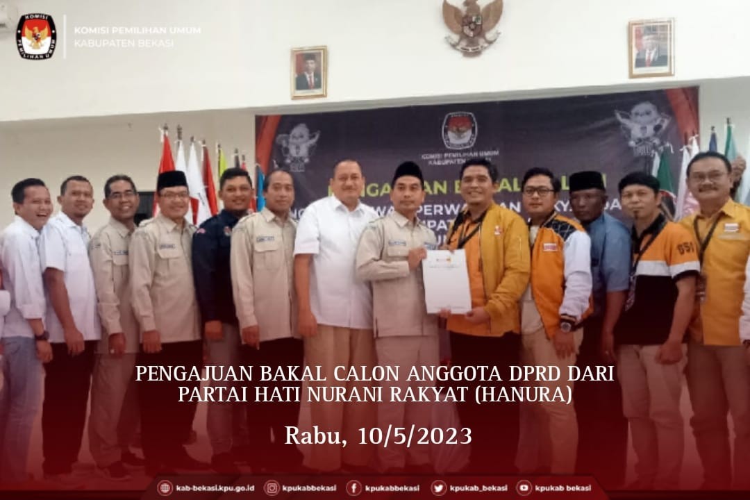 Bekasi, kab-bekasi.kpu.go.id_DPC Partai Hati Nurani Rakyat (HANURA) Kabupaten Bekasi menyampaikan pengajuan bakal calon anggota DPRD Kabupaten Bekasi untuk Pemilihan Umum Tahun 2024 kepada KPU Kabupaten Bekasi pada Rabu (10/5/2023) pukul 15.00 WIB.