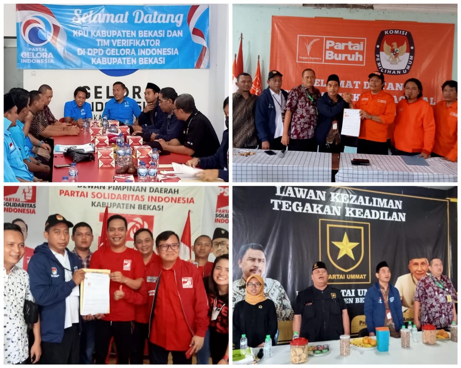 Pada hari pertama verfak, KPU kabupaten Bekasi mendatangi empat kantor partai politik, yaitu Partai Gelora Indonesia, Partai Solidaritas Indonesia (PSI), Partai Buruh dan Partai Ummat.