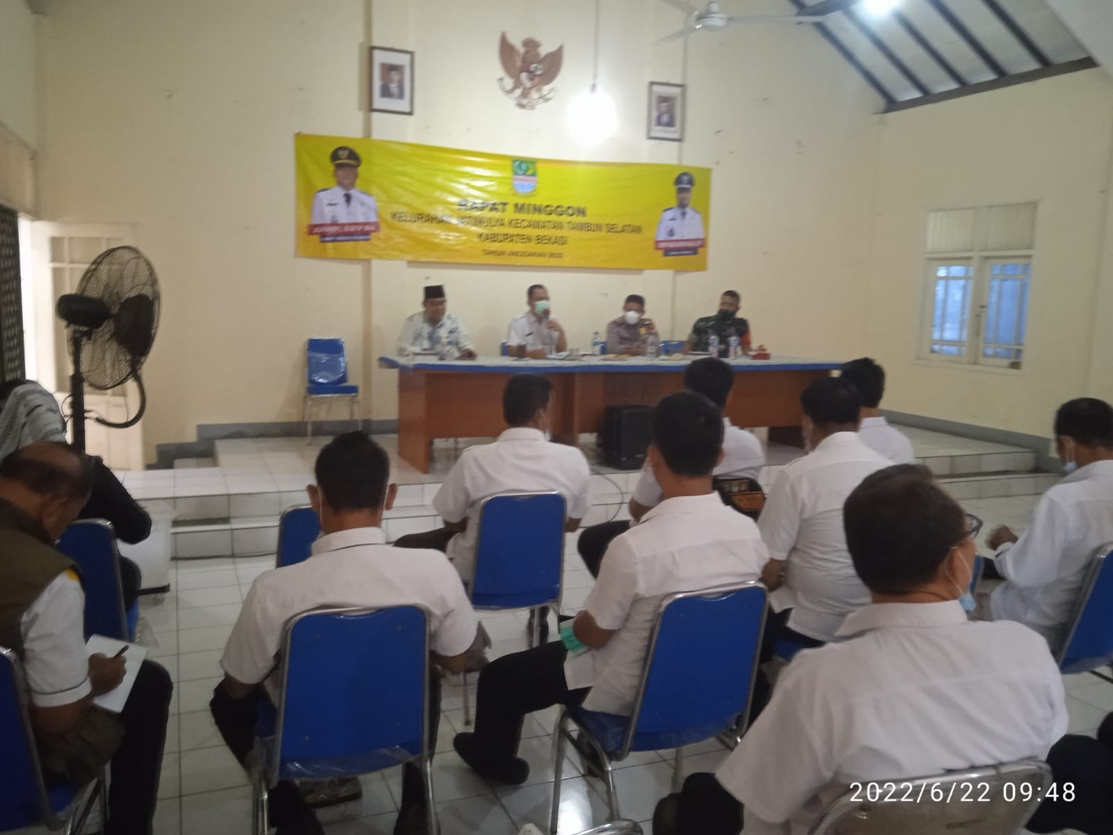 Rapat dipimpin Camat Tambun Selatan, Junaefi, S.T.P., M.Si. dihadiri Kanit Lantas Polsek Tambun Subandriyo, Babinsa Jatimulya Dede Sonjaya.