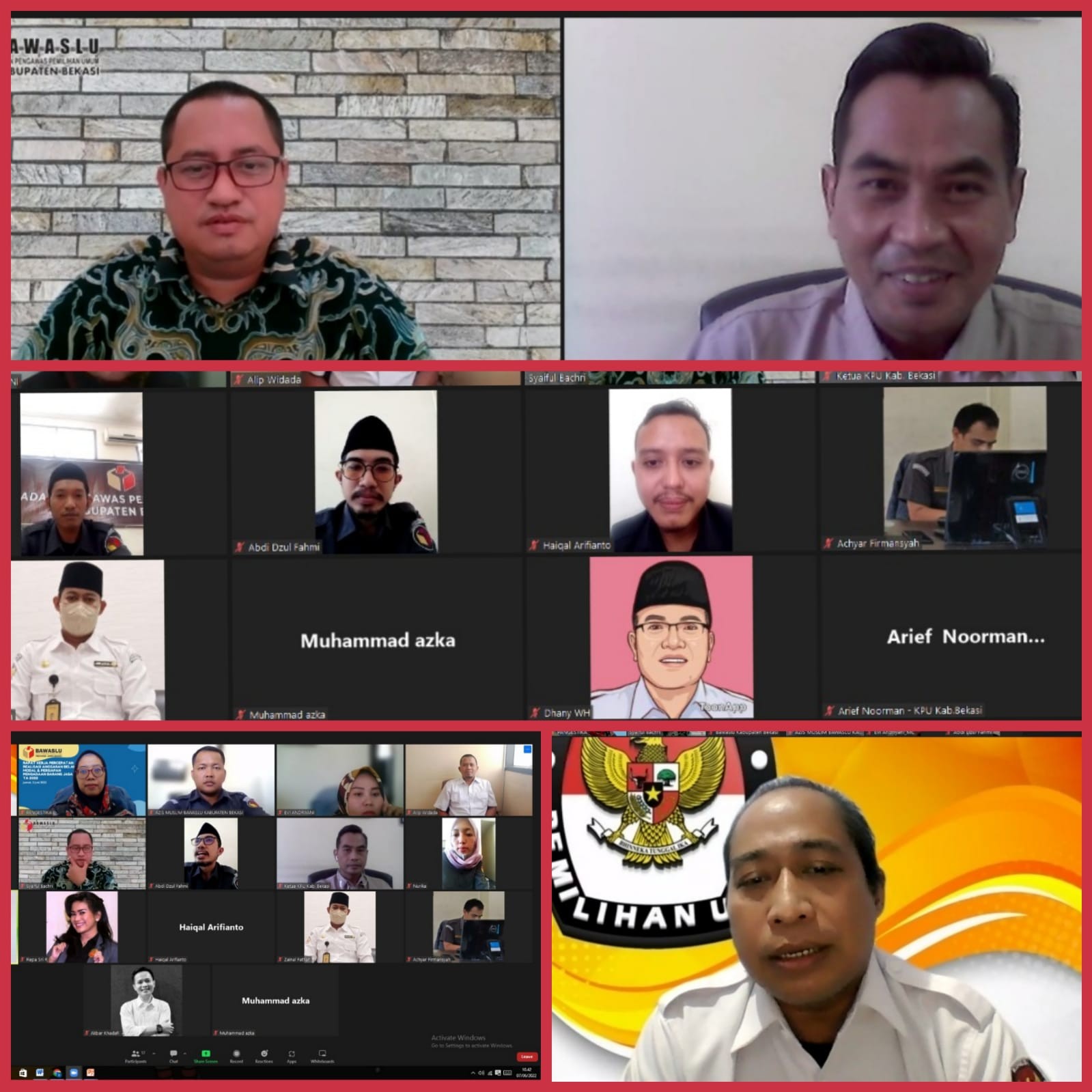 BEKASI, kab-bekasi.kpu.go.id – Komisi Pemilihan Umum (KPU) Kabupaten Bekasi mengikuti rapat koordinasi bertema “Sinergitas Kelembagaan dalam rangka Mempersiapkan SDM dan Kesekretariatan menghadapi Pemilu 2024" yang diselenggarakan secara hybrid oleh Bawaslu Kabupaten Bekasi, Selasa (7/6/2022).