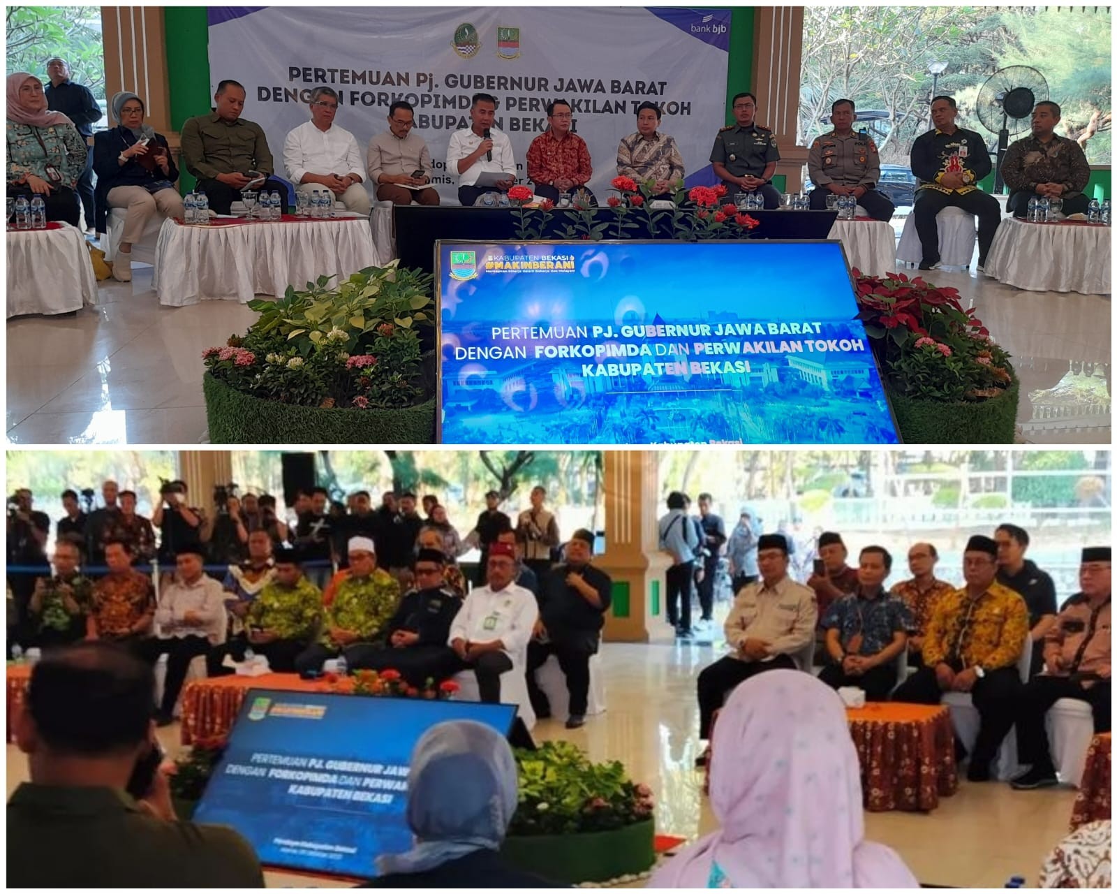 Bekasi, kab-bekasi.kpu.go.id_Pj. Gubernur Jawa Barat, Bey Machmudin melakukan kunjungan perdana ke Kabupaten Bekasi dan bertemu dengan Pj Bupati Dani Ramdan, jajaran Forkopimda dan Perwakilan Tokoh Kabupaten Bekasi. Bertempat di Aula Pendopo, Komplek Pemerintahah Kabupaten (Pemkab) Bekasi, Cikarang Pusat, Kamis (5/10/2023).