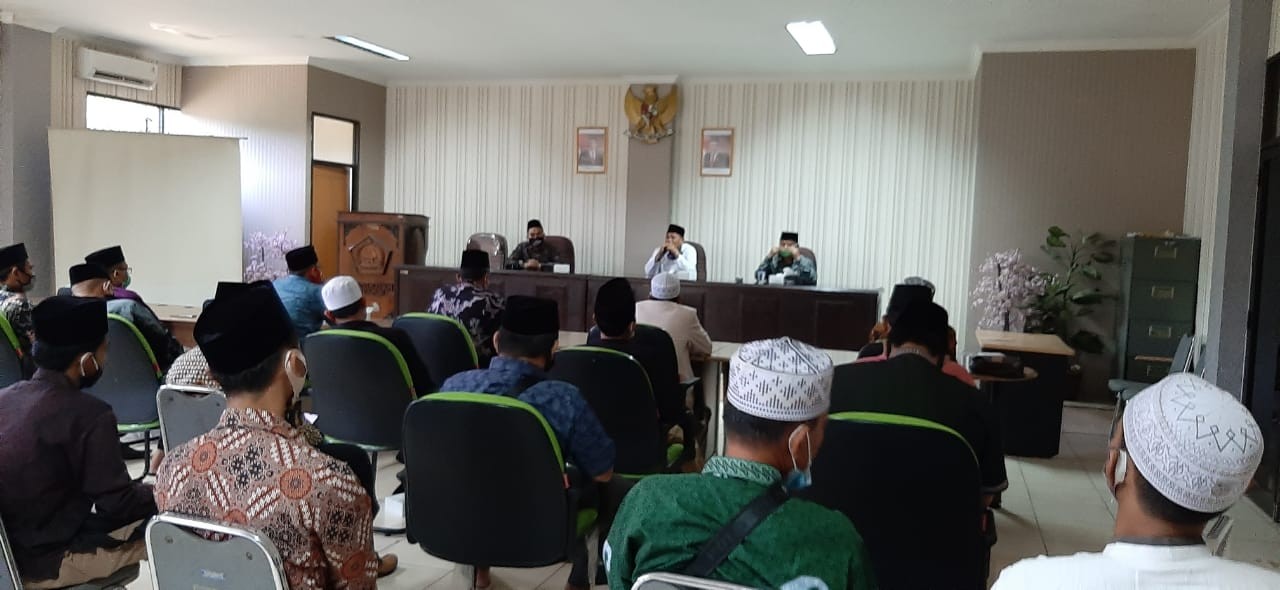 Cikarang, kab-bekasi.kpu.go.id - KPU Kabupaten Bekasi melakukan sosialisasi kepemiluan kepada para pimpinan pondok pesantren se-Kabupaten Bekasi yang tergabung dalam Lembaga Pondok Pesantren (LPP) Kementerian Agama Kab. Bekasi pada jum'at (18/9/20). Acara dilaksanakan di Aula kantor Kementerian Agama Kab. Bekasi dalam agenda rapat koordinasi lembaga pondok pesantren yang diselenggarakan oleh Seksi Pendidikan Diniyah dan Pondok Pesantren Kementerian Agama Kab. Bekasi. Acara dibuka oleh Kepala Kantor kementerian Agama Kab. Bekasi Drs. H. Sobirin, MM.