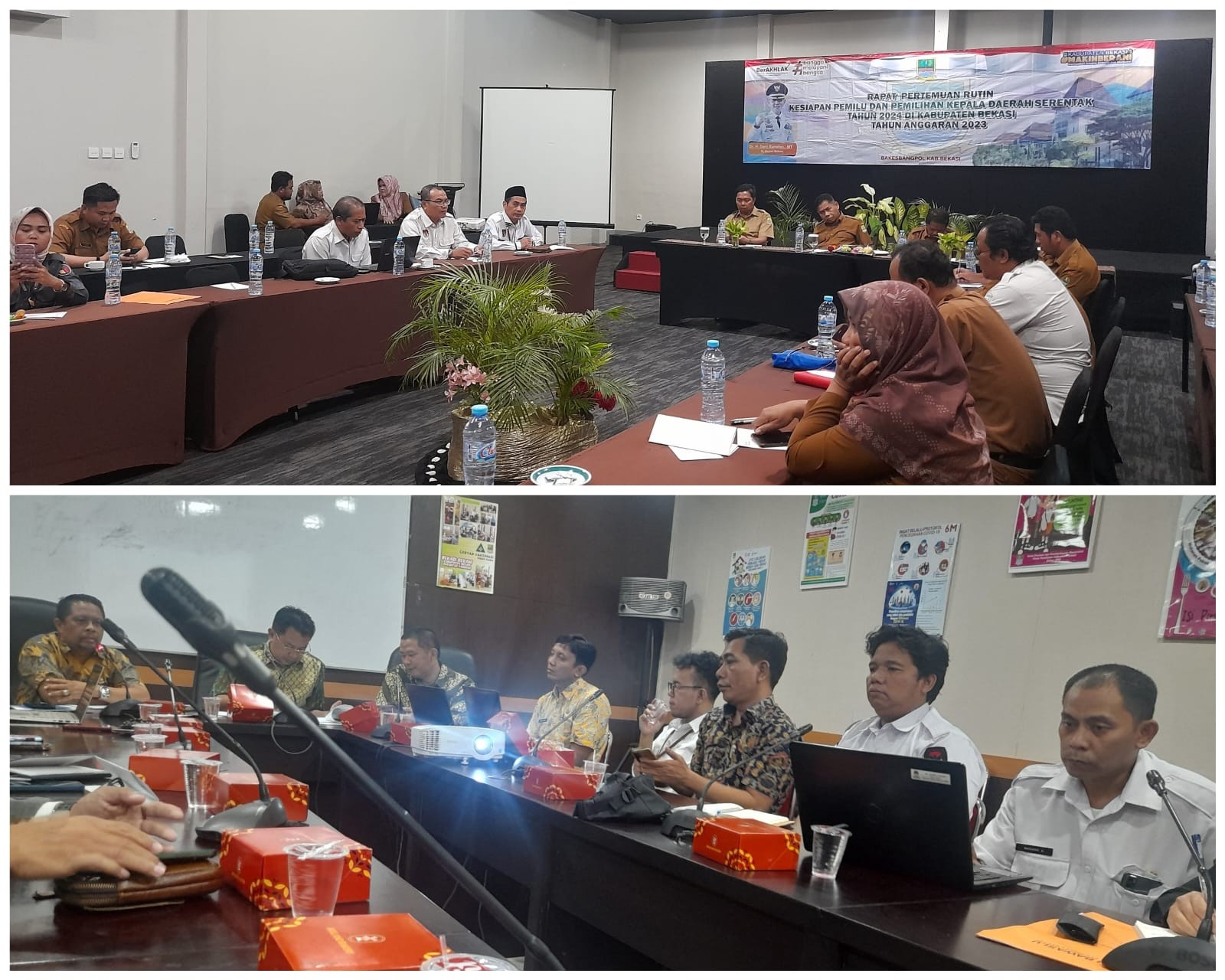 Bekasi, kab-bekasi.kpu.go.id_Komisi Pemilihan Umum (KPU) Kabupaten Bekasi mengikuti rapat pertemuan rutin kesiapan pelaksanaan pemilu dan pilkada serentak yang digelar Badan Kesbangpol di Prime Biz Cikarang, Senin (25/9/2023).