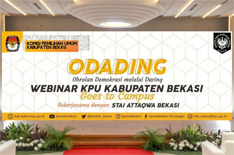 Bekasi, kab-bekasi.kpu.go.id - Komisi Pemilihan Umum (KPU) Kabupaten Bekasi bekerjasama dengan STAI At-Taqwa Bekasi menggelar kegiatan Goes to Campus yang bertajuk Obrolan Demokrasi melalui Daring (ODADING), Rabu (18/11/2020).