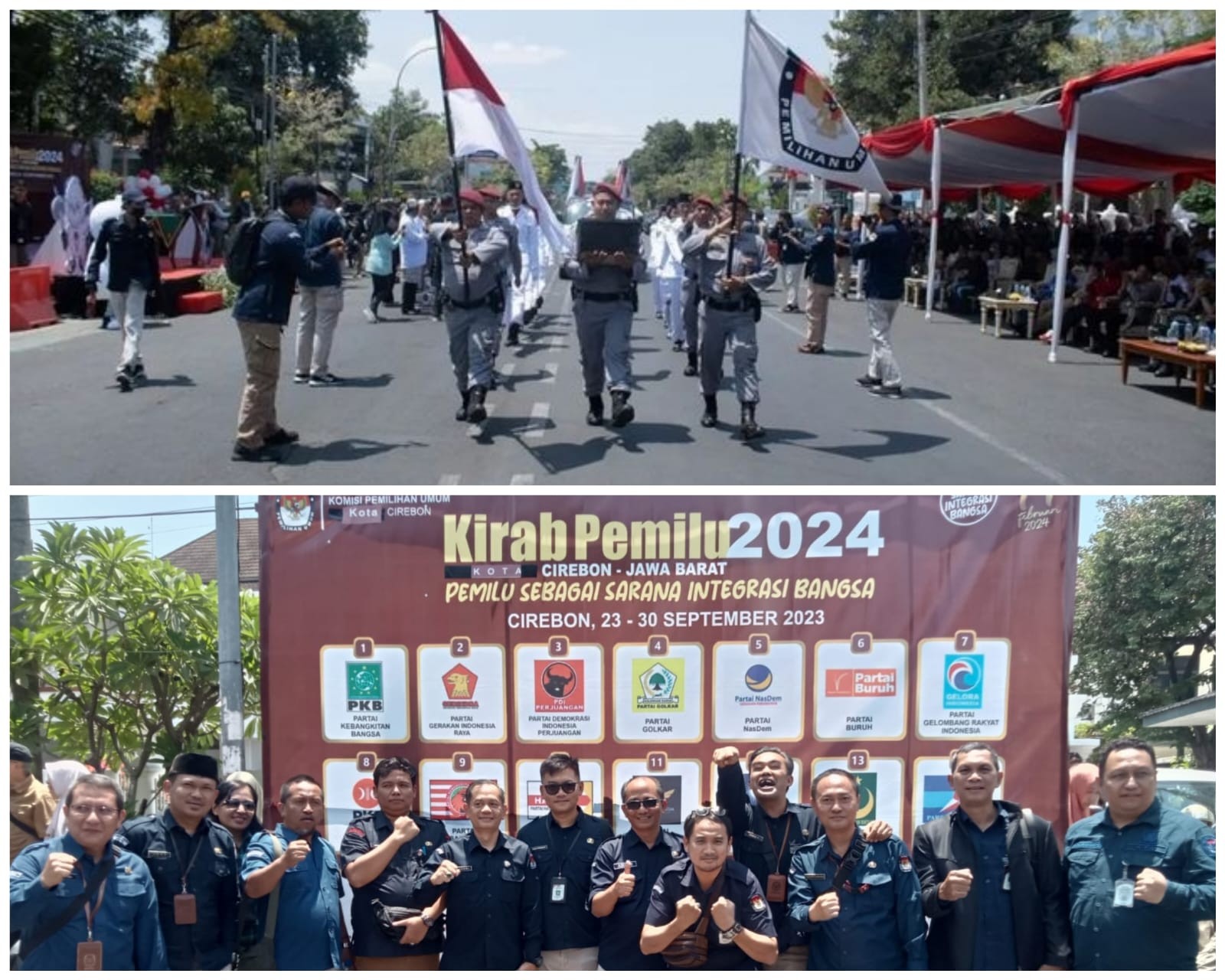 Cirebon, kab-bekasi.kpu.go.id_KPU Kabupaten Bekasi menghadiri kegiatan Kirab Pemilu 2024 di Kota Cirebon, Sabtu (23/9/2023). Tampak hadir Kadiv Sosdiklihparmas Wahab Habieby, Sekretaris Wahid Rosidi, Kasubag Teknis Ismail serta sejumlah staf pendukung.