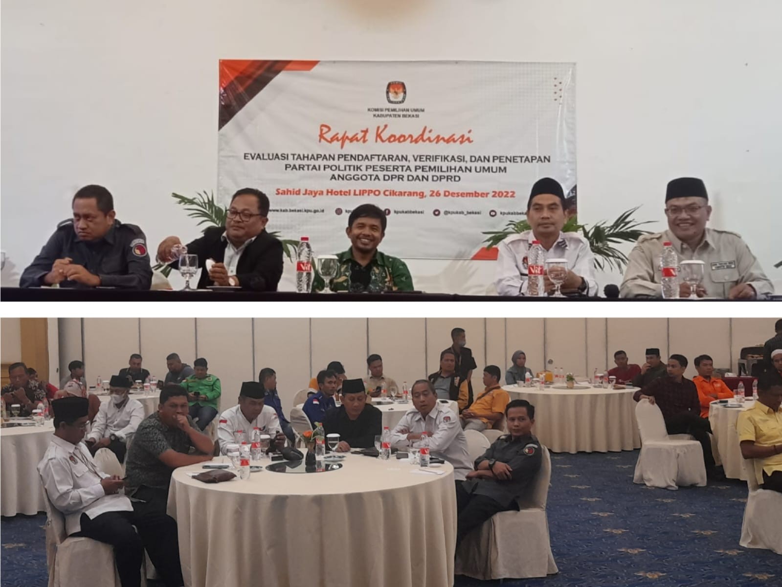 Hal tersebut disampaikan dalam Rapat Koordinasi Evaluasi Tahapan Pendaftaran, Verifikasi dan Penetapan Partai Politik Peserta Pemilu Tahun 2024 yang diselenggarakan oleh KPU Kabupaten Bekasi, Senin (26/12/2022) di Hotel Sahid Jaya, Lippo Cikarang.