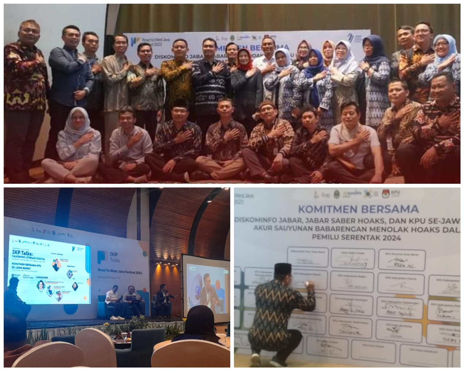 Deklarasi ditandai dengan penandatanganan “Komitmen Bersama Diskominfo Jabar, Jabar Saber Hokas dan KPU se- Jawa Barat Akur Sauyunan Babarengan Menolak Hoaks Dalam Pemilu Serentak 2024” oleh Ketua KPU Kabupaten/Kota se-Jawa Barat di Hotel Novotel Bandung, Sabtu (8/10/2022).