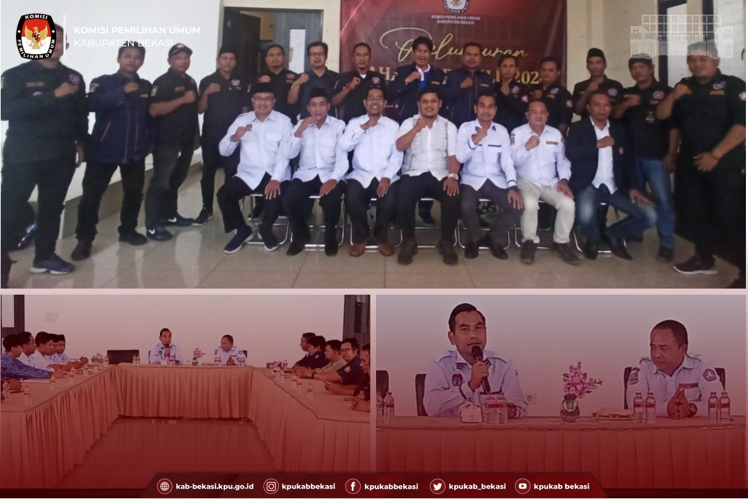 Ketua Karang Taruna Kabupaten Bekasi, Ahmad Taufik dan Sekretaris Arif Rahman Hakim beserta jajaran pengurus diterima oleh Ketua KPU Kabupaten Bekasi, Jajang Wahyudin di Aula Kantor KPU, Jalan Raya Rengas Bandung Nomor 103 Kedungwaringin, Bekasi.