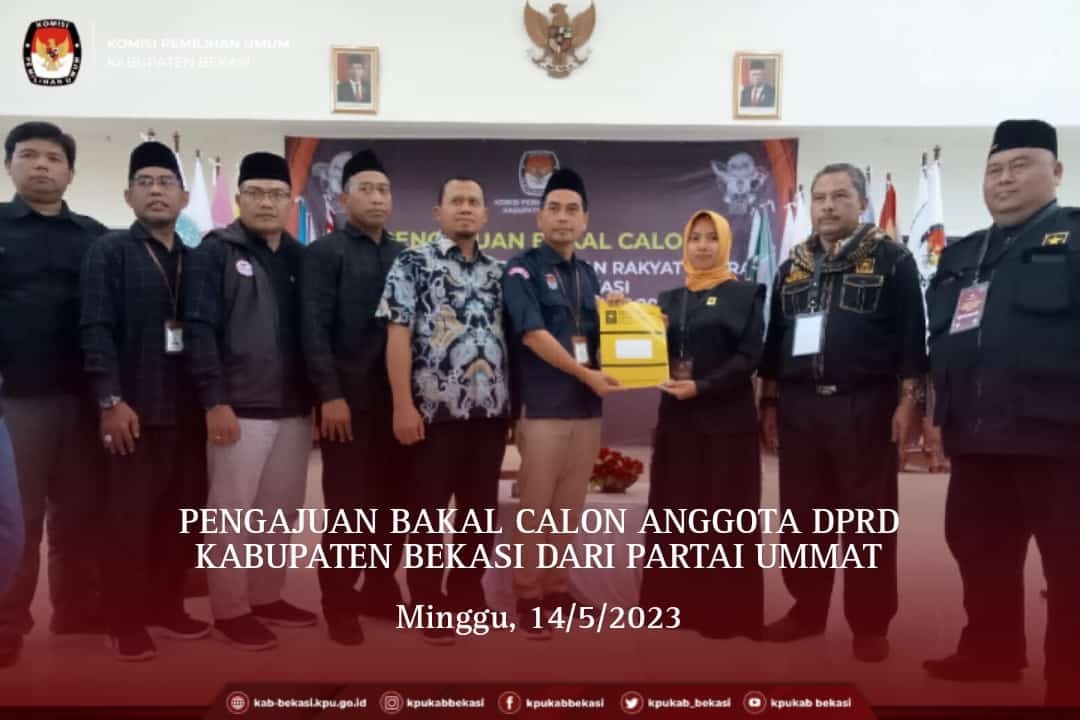 Kedatangan delegasi Partai Ummat dipimpin Ketua DPW Partai Ummat Jawa Barat, H. Daris, Ketua DPD Kabupaten Bekasi Yayu Umayah dan Sekretaris H. Ata yang menyerahkan berkas pengajuan sebanyak 55 bakal calon anggota legislatif untuk 7 (tujuh) daerah pemilihan DPRD Kabupaten Bekasi.