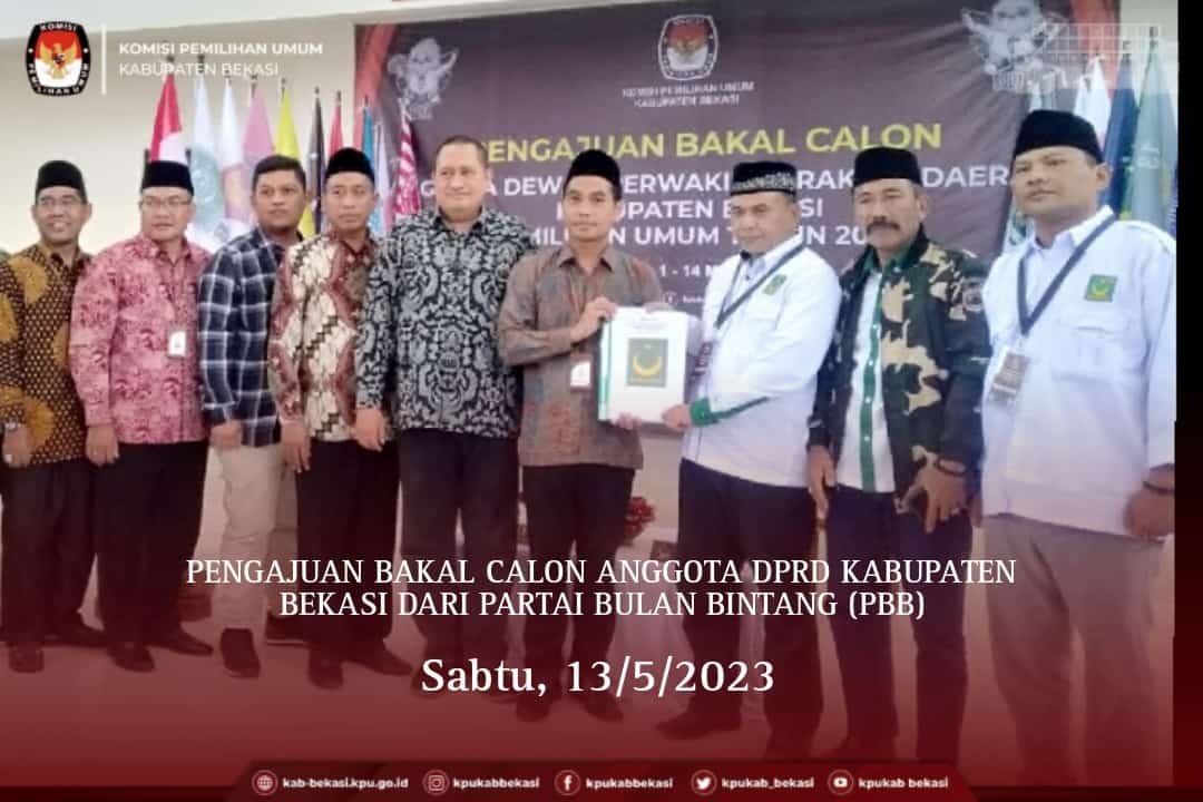 Bekasi, kab-bekasi.kpu.go.id_ DPC Partai Bulan Bintang (PBB) Kabupaten Bekasi menyampaikan pengajuan bakal calon anggota DPRD Kabupaten Bekasi untuk Pemilihan Umum Tahun 2024 ke KPU Kabupaten Bekasi pada Sabtu (13/5/2023) pukul 13.00 WIB.