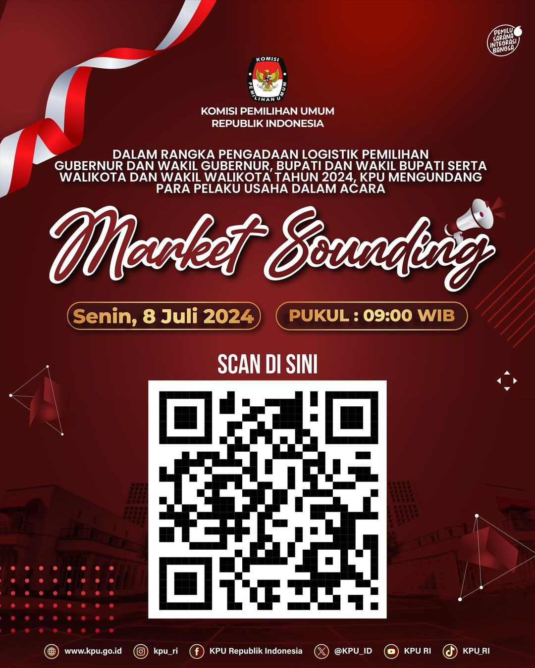 PENGUMUMAN MARKET SOUNDING PENGADAAN LOGISTIK PILKADA TAHUN 2024 Sabtu, 06 Juli 2024 07:00 36 Pengumuman selengkapnya DISINI Bagikan: Dilihat 36 Kali.