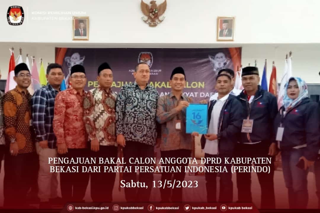 Bekasi, kab-bekasi.kpu.go.id_ DPD Partai Persatuan Indonesia (PERINDO) Kabupaten Bekasi menyampaikan pengajuan bakal calon anggota DPRD Kabupaten Bekasi untuk Pemilihan Umum Tahun 2024 ke KPU Kabupaten Bekasi pada Sabtu (13/5/2023) pukul 15.00 WIB.