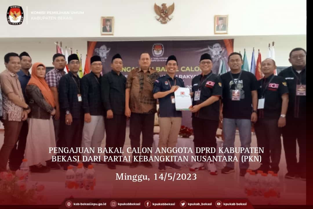 Bekasi, kab-bekasi.kpu.go.id_Pimpinan Cabang (Pimcab) Partai Kebangkitan Nusantara (PKN) Kabupaten Bekasi menyampaikan pengajuan bakal calon anggota DPRD Kabupaten Bekasi untuk Pemilihan Umum Tahun 2024 ke KPU Kabupaten Bekasi pada Minggu (14/5/2023) pukul 16.00 WIB.